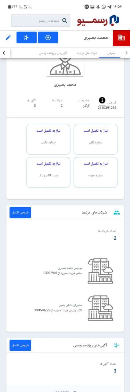 ادمین سلام مجدد، ی چن تا چیز میگم میرم. رفتم تحقیق در مورد اقای بصیری. اسم محمد بصیری رو سرچ میکنی واقعا شرکت دارن با اقوامشون اقا ناصر. یه شرکت جامه بصیری یکی هم بسته بندی.