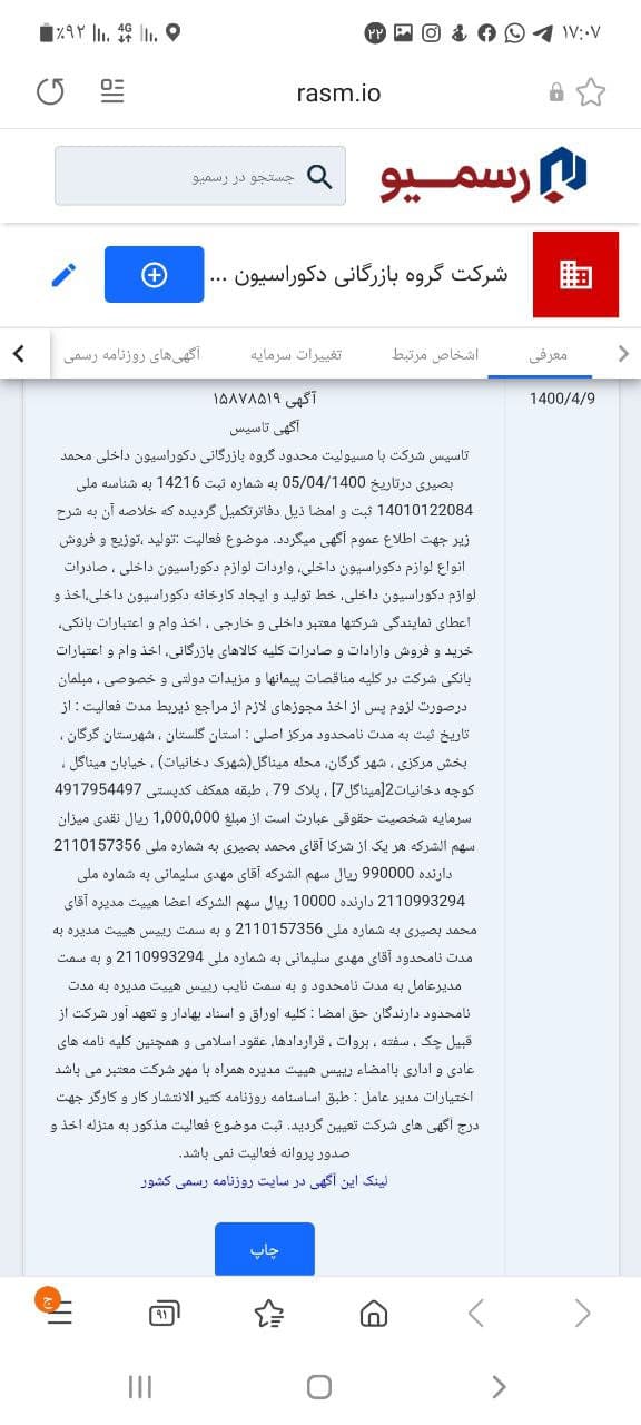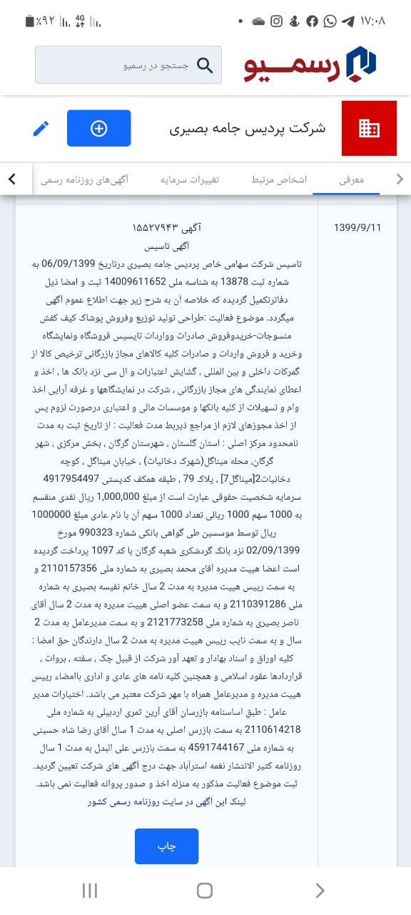 دو نفرشون محمد بصیری هستن توی همون به قول خودشون سرچ زدم (کارخانه پوشاک) جزء مؤسسین هستن. این سند رسمی دیگه تاریخ ها هم مشخص هستن یعنی همین دو سه تا هست دیگه مخاطب خودش باید عاقل باشه.